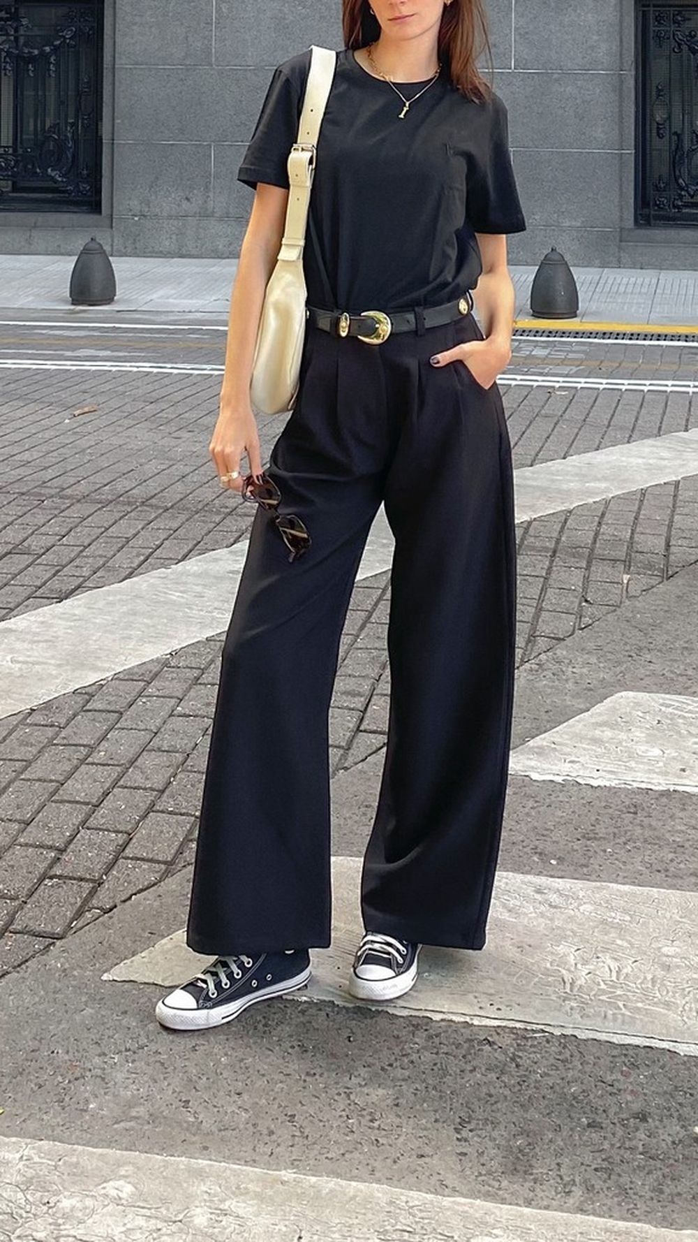Pantalones sastreros de pierna recta: ideales para un look elegante, combinan con blazers y zapatillas.